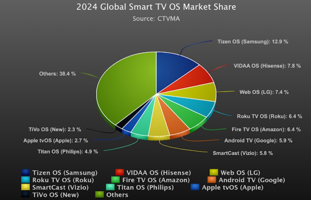 The key identifier is that smart TVs are mini-computers with memory and storage running an operating system (LG WebOS, Samsung Tizen, Android TV, Hisense VIDAA, Visio, Roku, Kodi, and many more Android TV forks (customisations).