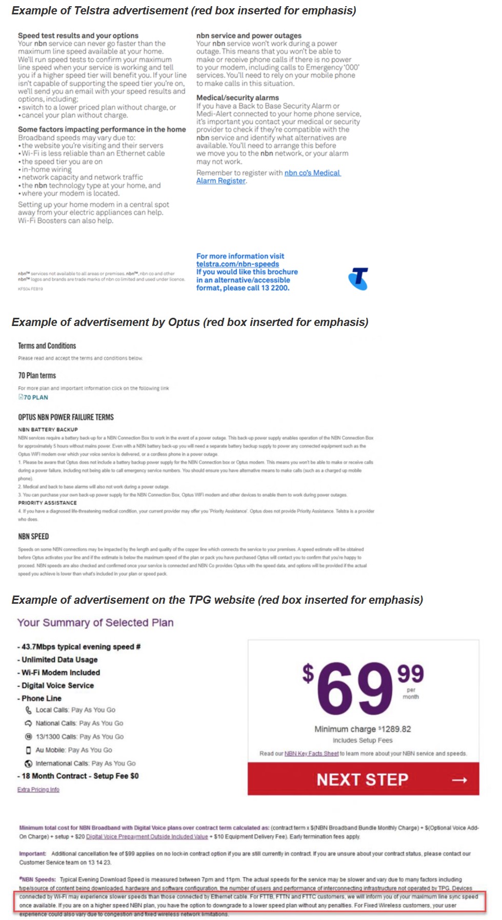 Telstra, Optus and TPG each undertook to tell consumers within a specific or reasonable timeframe if the contracted speed was unavailable. They were to offer a cheaper plan with a refund if that was the case. They did not do these things. Hundreds of thousands of consumers were misled by these three big internet providers. This behaviour is even more concerning because they were well aware of these issues and had earlier given undertakings to the ACCC to provide remedies to consumers with underperforming NBN FTTN plans. We are very disappointed that these companies did not take seriously the undertakings they gave to the ACCC.