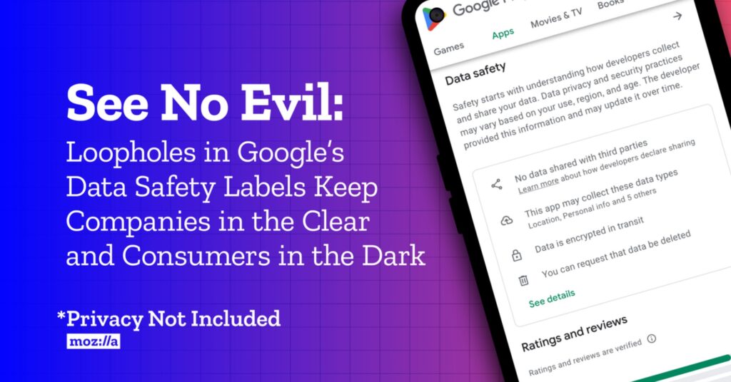 In nearly 80% of the apps reviewed, Mozilla found that the labels were false or misleading. This was based on discrepancies between the apps’ privacy policies and the information apps self-reported on Google’s Data Safety Form. Researchers concluded that the system fails to help consumers make more informed choices about their privacy before purchasing or downloading one of the store’s 2.7 million apps.