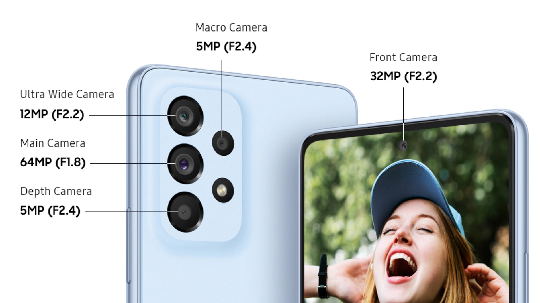 It is the same camera setup as the 2021 A52 – 64+12+5+5 and a 32MP selfie. Due to the COVID related parts shortage, the sensors can come from Samsung or Sony (our unit).