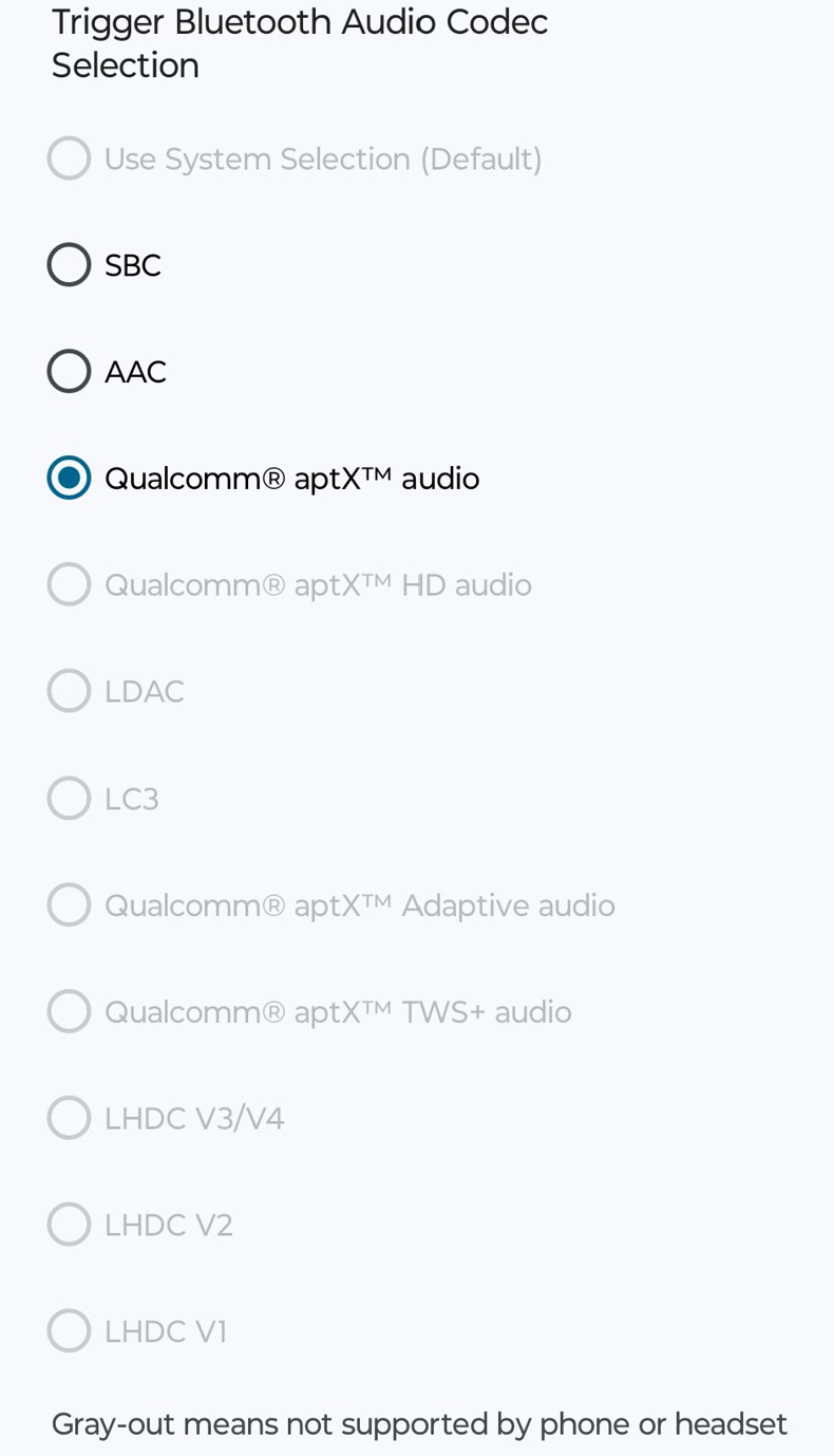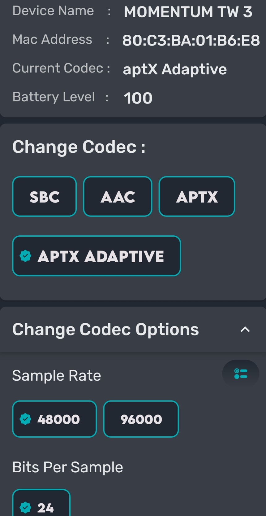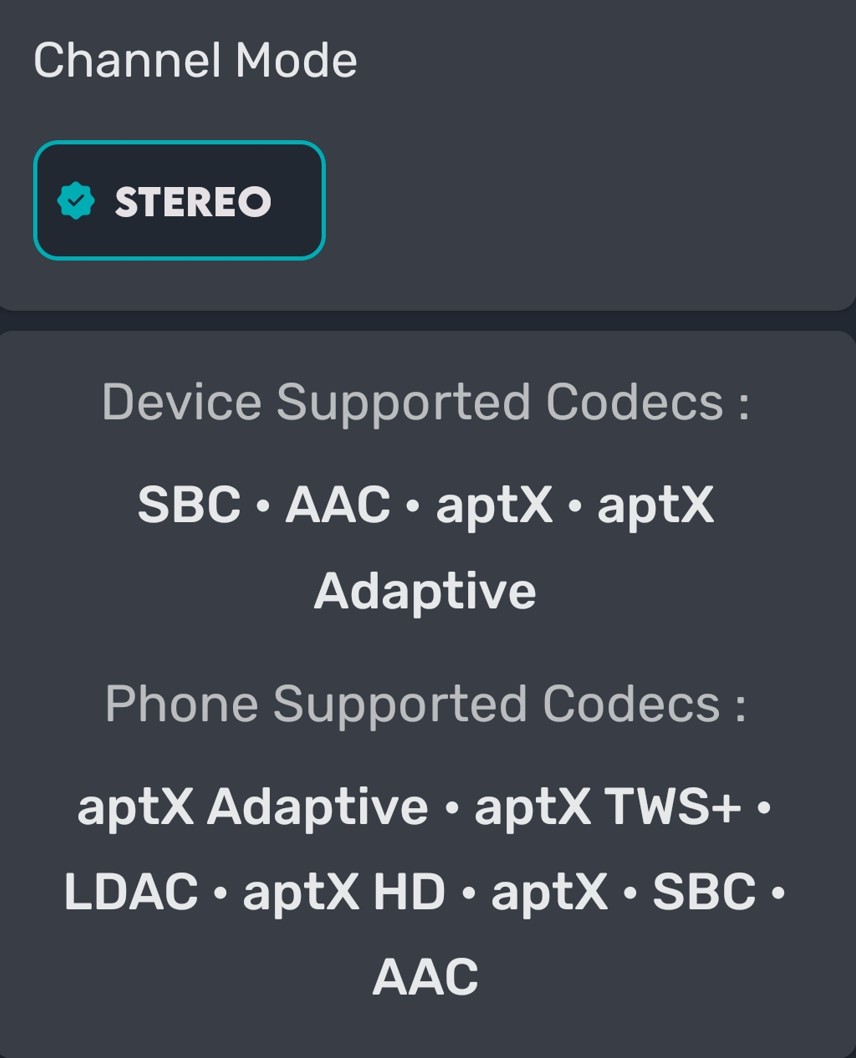 With Apple it is AAC – that is it. With Android, download the free Bluetooth Codec Changer, attach your favourite buds or cans, and you will see.