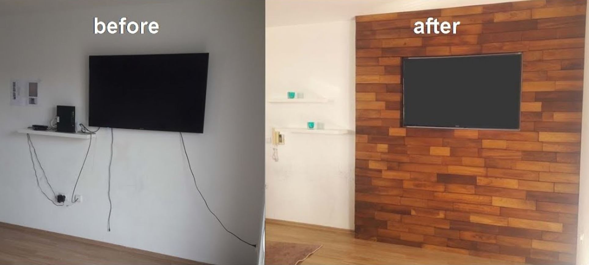 Also, you won’t want to have the antenna, power, HDMI, or other cables hanging down from the TV, so look for ways to disguise them. The easy and relatively low-cost answer is to get a plasterer to place a sheet of painted plasterboard on 50mm timber studs on the existing wall to create a false wall through which you can run all the cables.