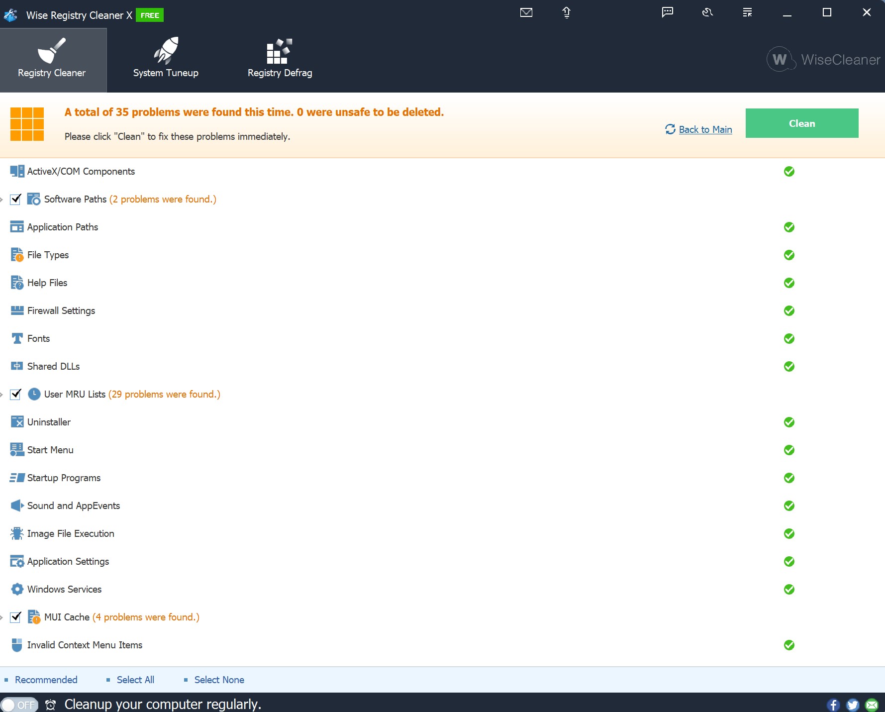 Registry Cleaner removes junk, broken links, repairs errors, defragment, and keeps your PC at peak performance. You should run a deep scan regularly. It also has a system tune-up tab to optimise Windows performance.