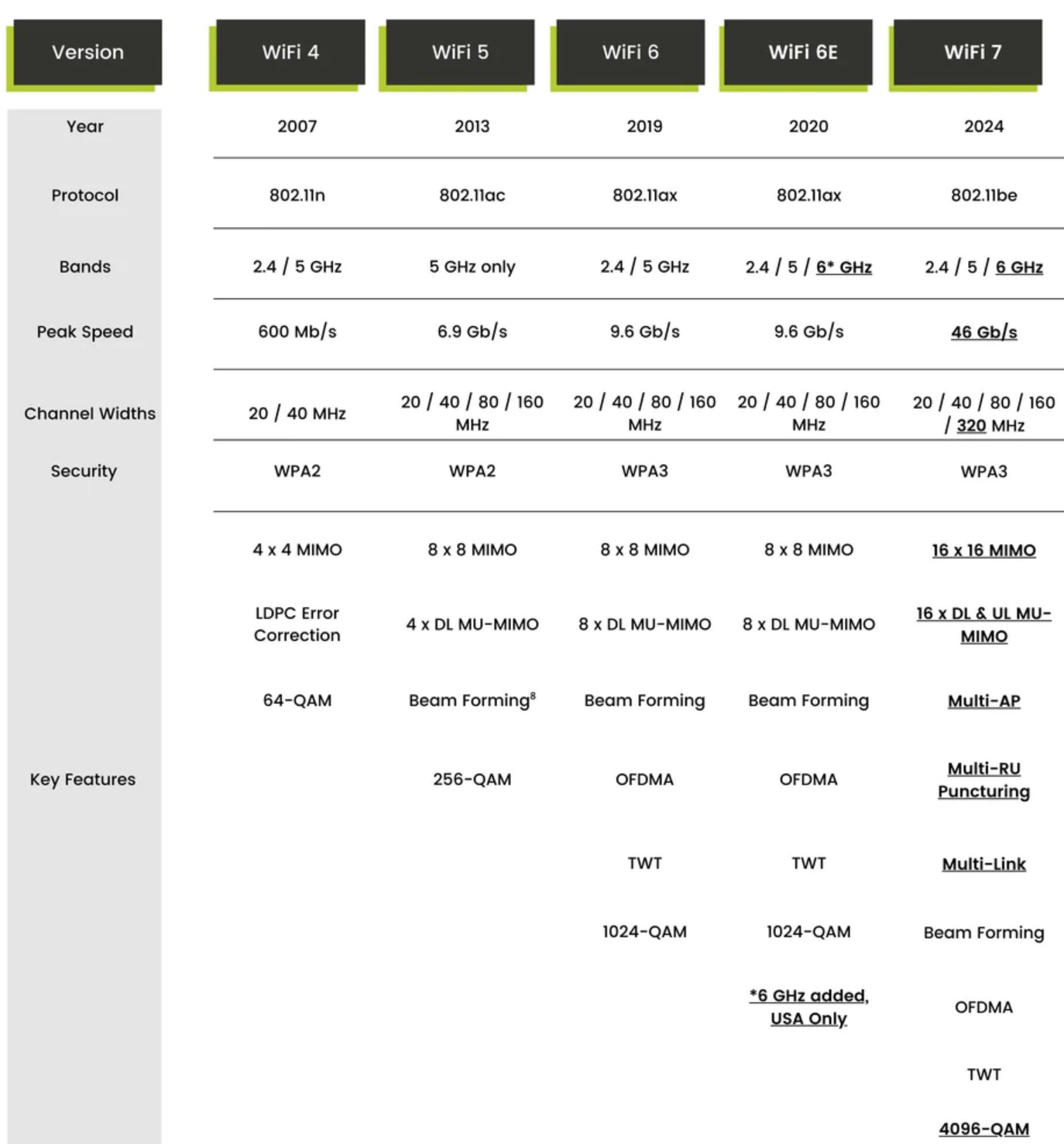 When we originally wrote this guide, Wi-Fi 5 AC was the fastest. Now, there is a huge difference between the older Wi-Fi 5 AC (and earlier) and Wi-Fi 6 or later. It is called full-duplex and means that the Wi-Fi transmission (Tx) and Receive (Rx) speeds are the same. Think of Wi-Fi 6 or later as a two-way bridge where traffic can pass both ways compared to the earlier half-duplex, which is a single-lane bridge where traffic has to wait until the oncoming lane is clear.