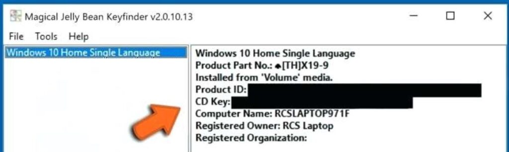 To find your Windows version and Windows key, download Magical Jelly Bean Finder (there is a Mac version too) and use it to find the Windows CD Key – it looks like this DA246-4VFG4-RBS8C-YRZYV-YY49C. Write it down and also put a copy in a plain text file. You may need this key to activate Windows again (Control Panel, System, Activate Windows) if your machine does not automatically do so.