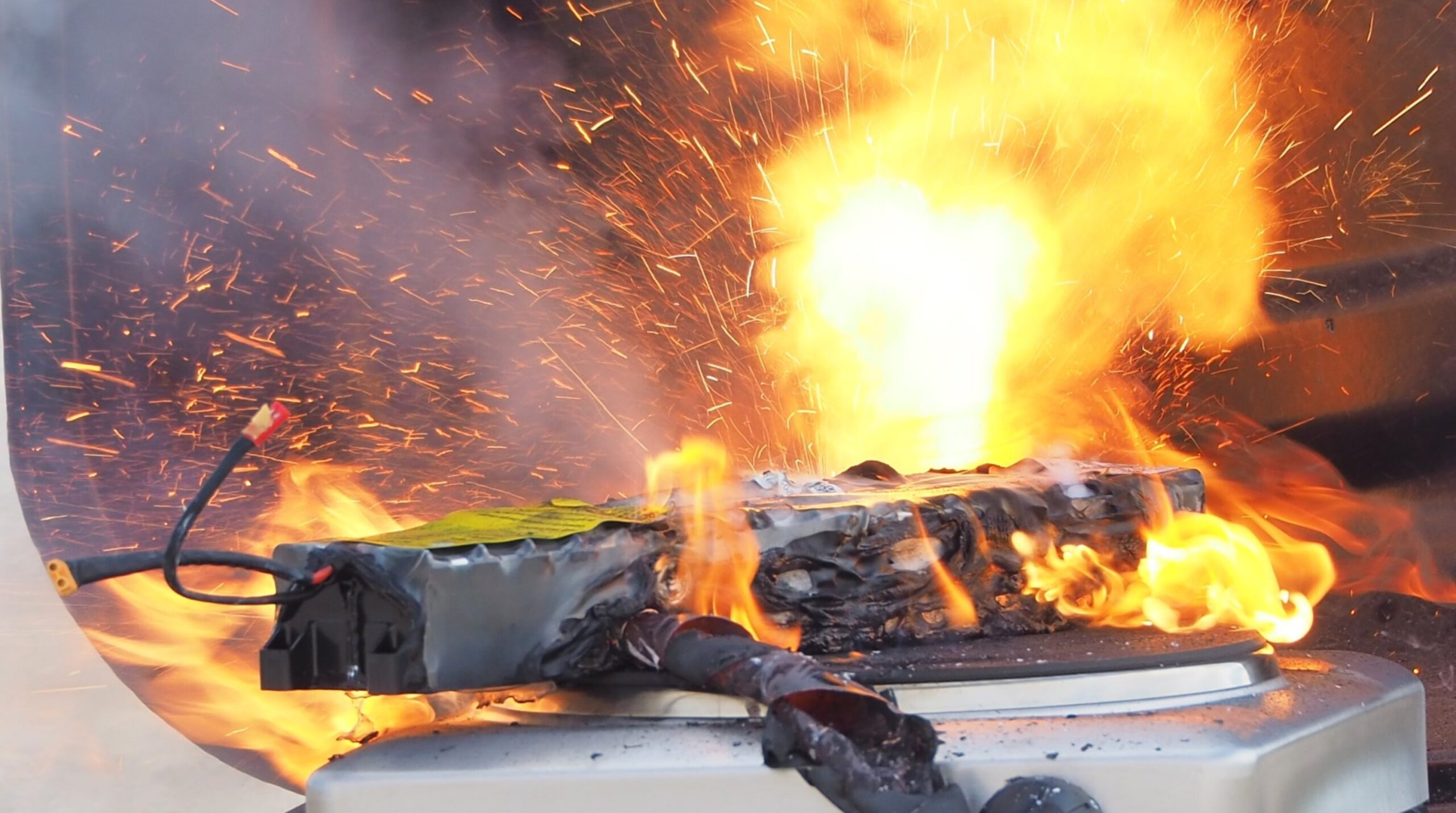 The risk increases with the number of ‘cells’ in the battery pack. A single cell (cylinder) will burn out quickly. E-bikes/scooters/skateboards are so explosive because they use dozens of cells in a confined space.