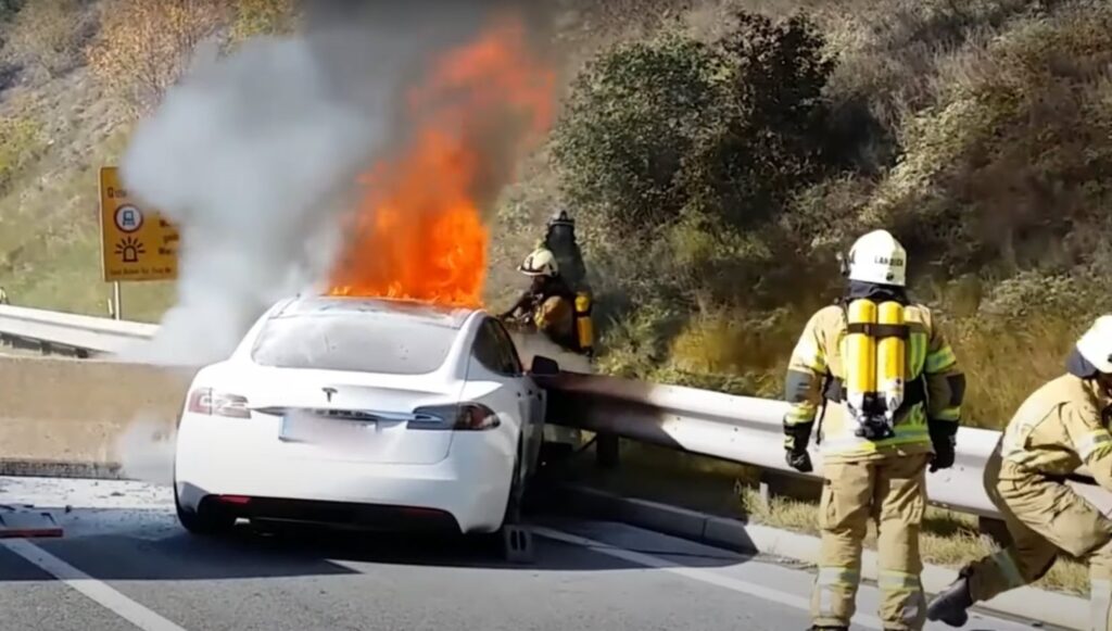 Some insurers are beginning to ask for a Car Fire Blanket. These $3500, 6 x 8m x 30kg blankets are made to be pulled over a burning car and contain the fire – not put it out. A 9kg Class D fire extinguisher won’t do any good against an EV fire but may help stop flames from spreading to other items.