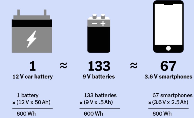 Think of this as litres of fuel in the tank. Fuel economy (real kilometres per litre) depends on the car’s load, speed, and braking. The bigger the capacity, the more devices it can run for longer.