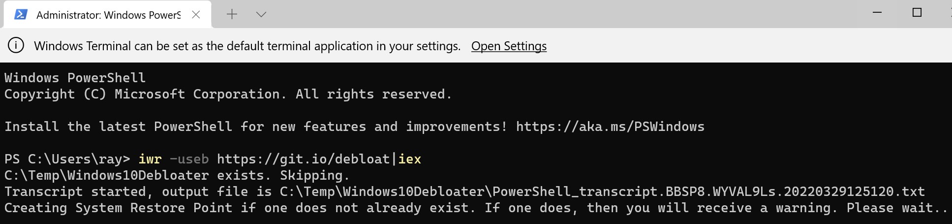 At the Prompt> cut and paste iwr -useb https://git.io/debloat|iex and press return