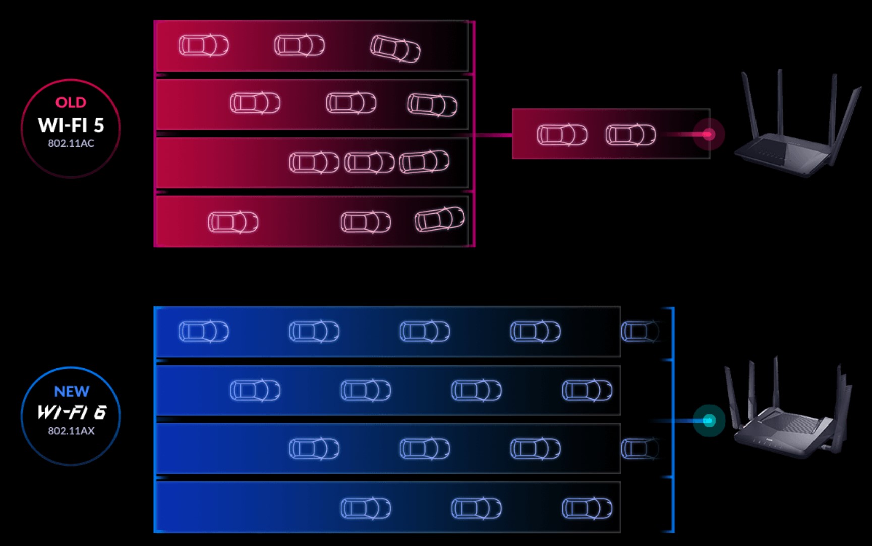 Wi-Fi 6 is full-duplex – a two-lane bridge carries twice as much traffic with no fear of collision. It is fair to say that a Wi-Fi 6 AX2600 router gives similar real-world speeds to a Wi-Fi 5 AC5200 router. Most router makers claim a 4X improvement in capacity and a 40% increase in throughput over Wi-Fi 5 AC.