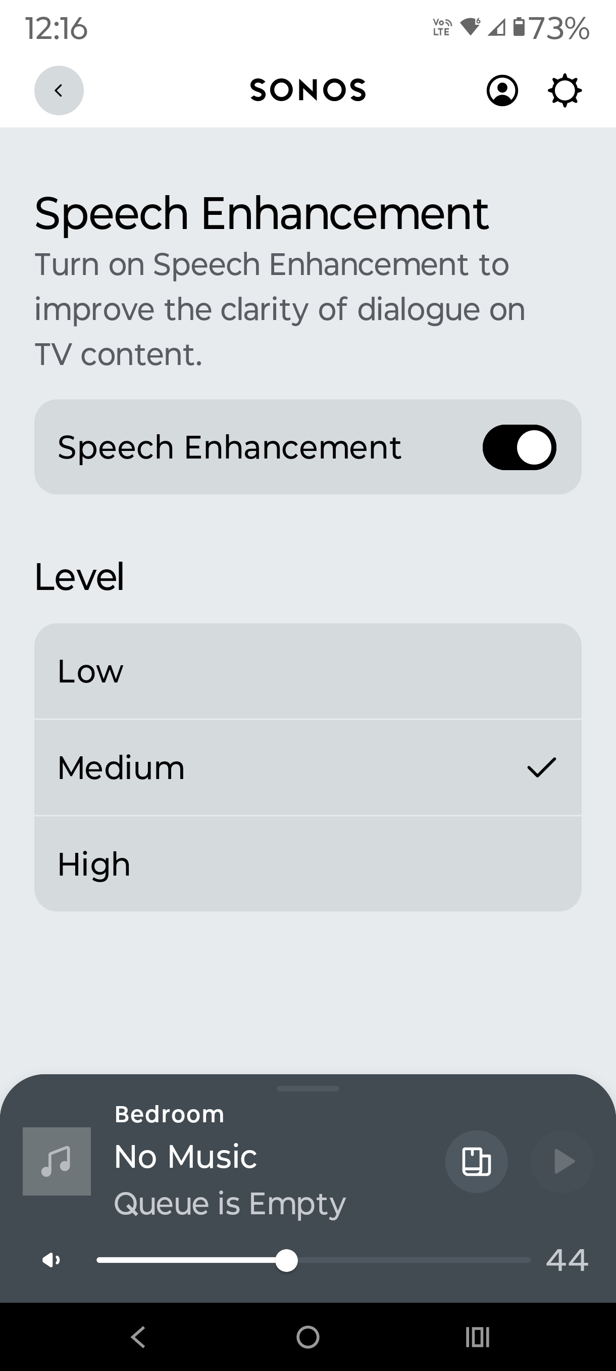 I recommend Sonos for hearing-impaired listeners. It can add three levels of speech enhancement and a night mode that reduces loud noises and focuses on speech.