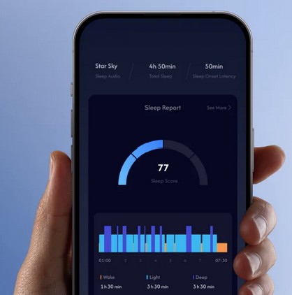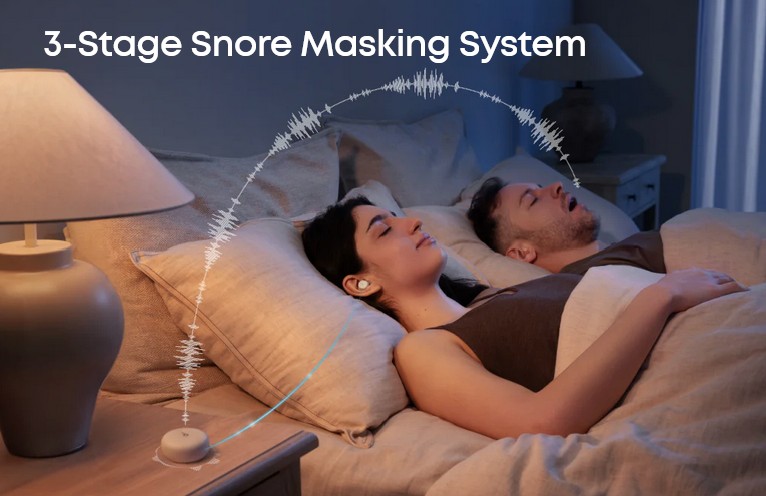 The charge case is part of the 3-stage snore masking system. It hears the snore and sends adaptively generated masking to the buds. Interestingly, it detected the wearer’s snores as well.