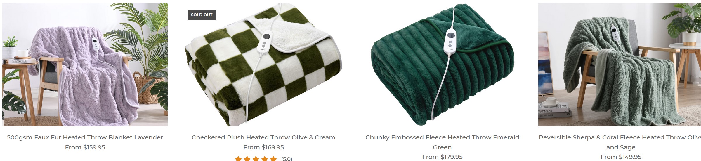 Finally, at Myer, we saw the Dreamaker heated throw range and realised that none of the others measured up to Dreamaker in materials, weight (gsm), and feel.
