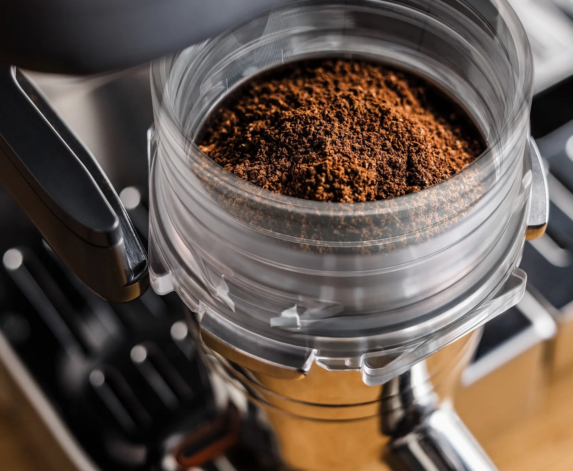 • Select coffee basket size: single (9g/22.5ml), double (18g/45ml) or Luxe (quad 40g/100ml) and inset into the handle. If you want long black, there are single, double or quad settings.