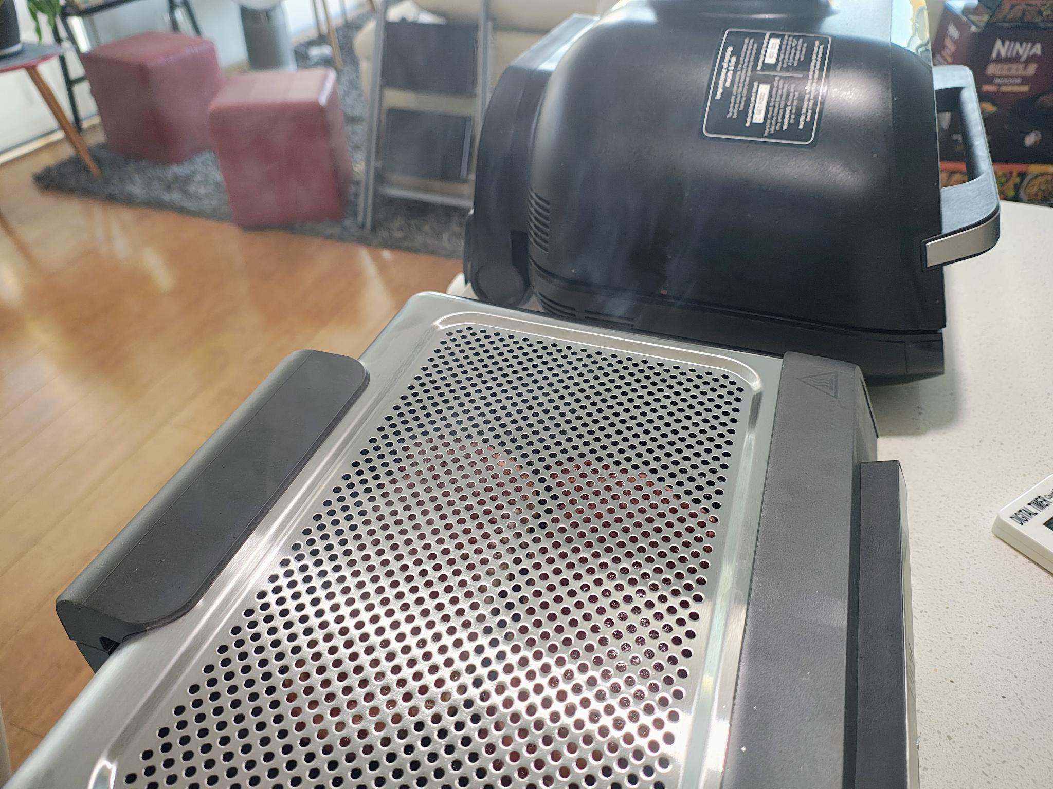 There is no indicator light for temperature, and Ninja simply recommends that you preheat with the lid down for 7 minutes. We tested at 180° and 260°, and the results were 8 and 15 minutes, pre-heat respectively. For temperature-critical cooking, an IR thermometer is cheap – $15-30 and a wise investment.