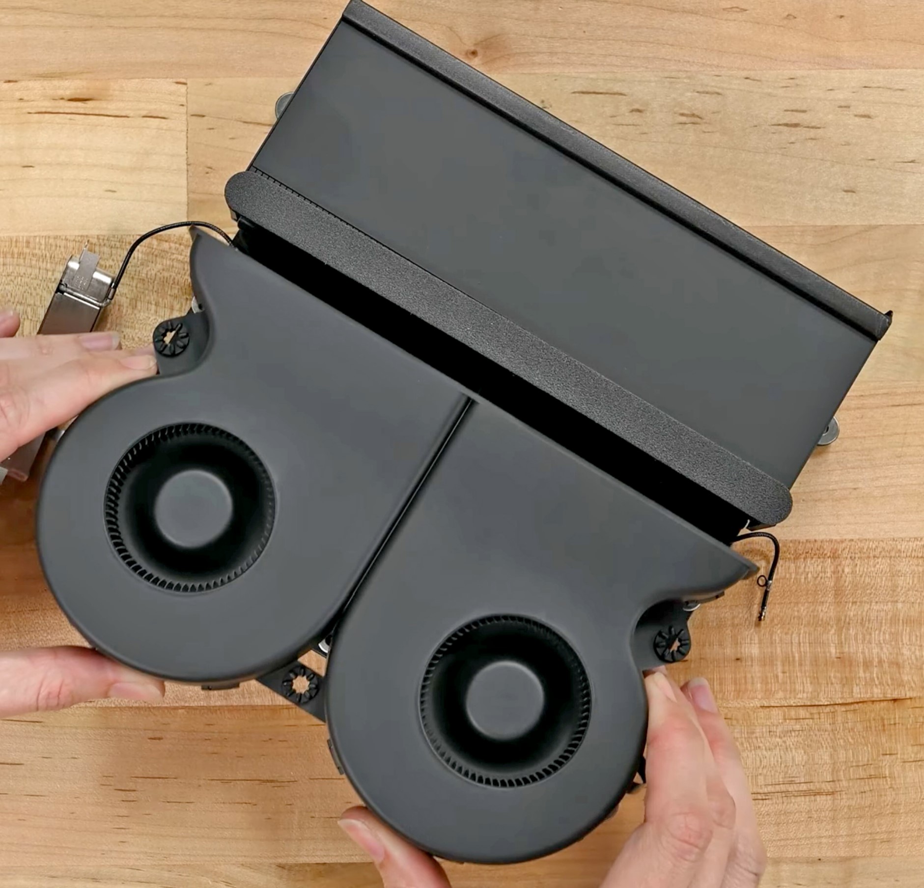 The heat sink and dual fans are enormous as the M1 Chips run very hot.