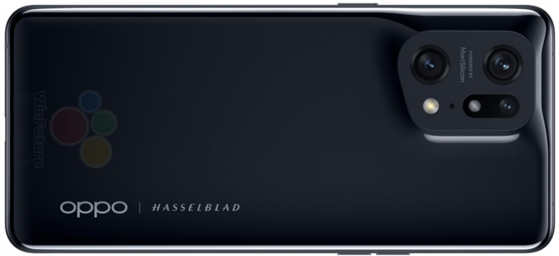 - Rear camera: Likely 2 x 50MP Sony/Hasselblad IMX766 (f/1.7, OIS, 1.0um binned to 2um and f/2.2 ultra-wide) plus a 13MP (f/2.4) with 5x Hybrid 20-x digital zoom, 8K video, and powered by OPPO MariSilicon X 6nm NPU that radically ups camera performance