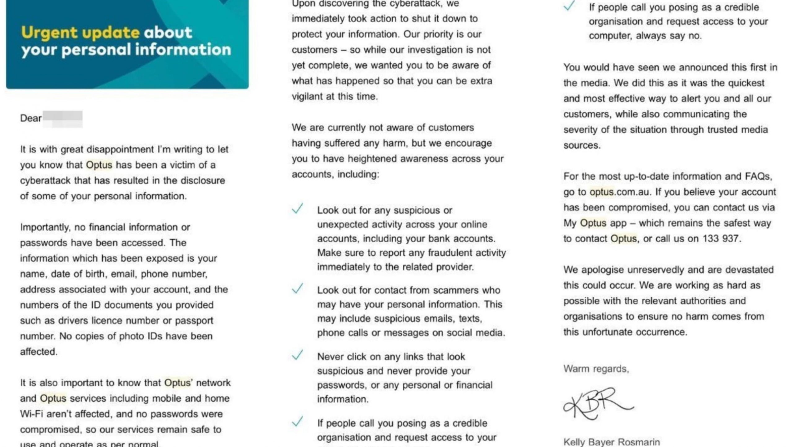 Many OPTUS customers have received an email or SMS advising that the following may have been exposed: