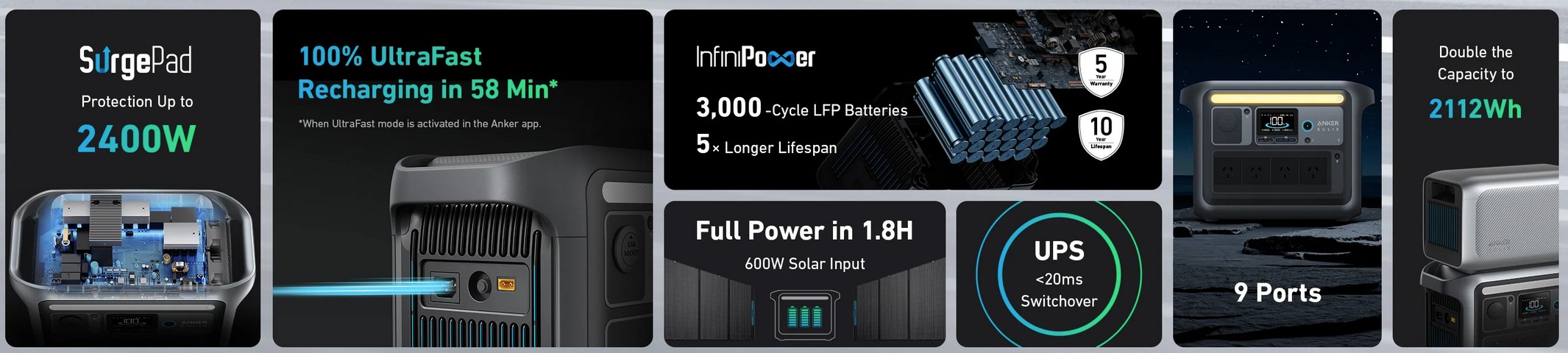 It can use an expansion battery, Anker SOLIX BP1000 1056Wh Expansion Battery RRP $1199, but currently on sale at $849.