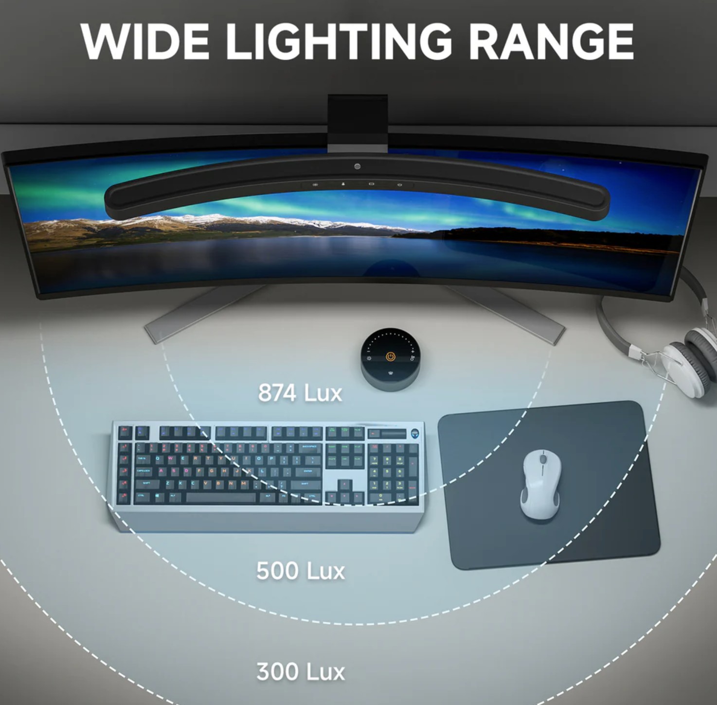 Quntis Curved Monitor light 45cm – a no-glare task light – any task light is better than none, but this suits curved monitors.