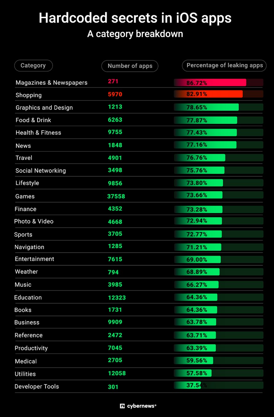 Cybernews researchers downloaded 156,000 iOS apps, about 8% of the App Store. They used automated analysis and reverse engineering—the same techniques used by attackers—to scan for secrets embedded directly in the app’s code—the kind of secrets developers should never store there.