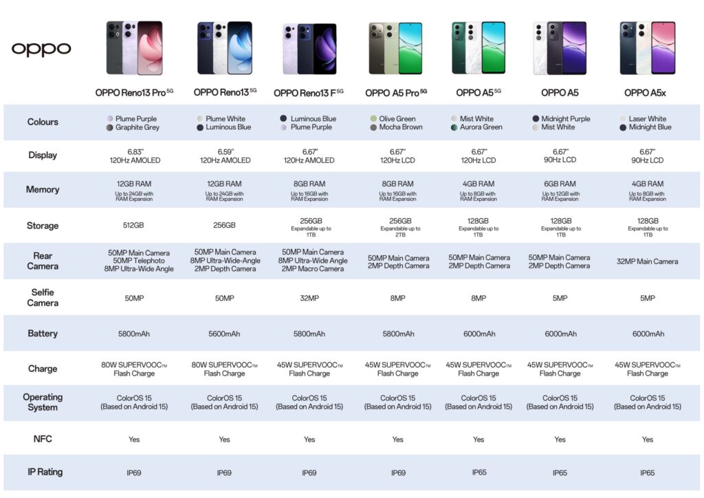 The OPPO A5 series has expanded to cover four variants, including two 5G and two 4G models, the latter using Qualcomm SD 6S Gen 1, which enhances regional and rural phone reception.