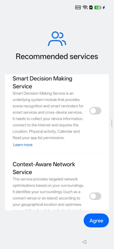 We wanted to point out some setup options that you need to be aware of. Each one enables further features that can impact privacy as they allow the phone (OPPO) to gather information. For example, allowing Global Search means it can search everything on your phone. Smart Decision Making allows access to the calendar and more. These are OPPO services, and if you are using Google Gemini (which you have already agreed to), you don’t necessarily need any of the below.