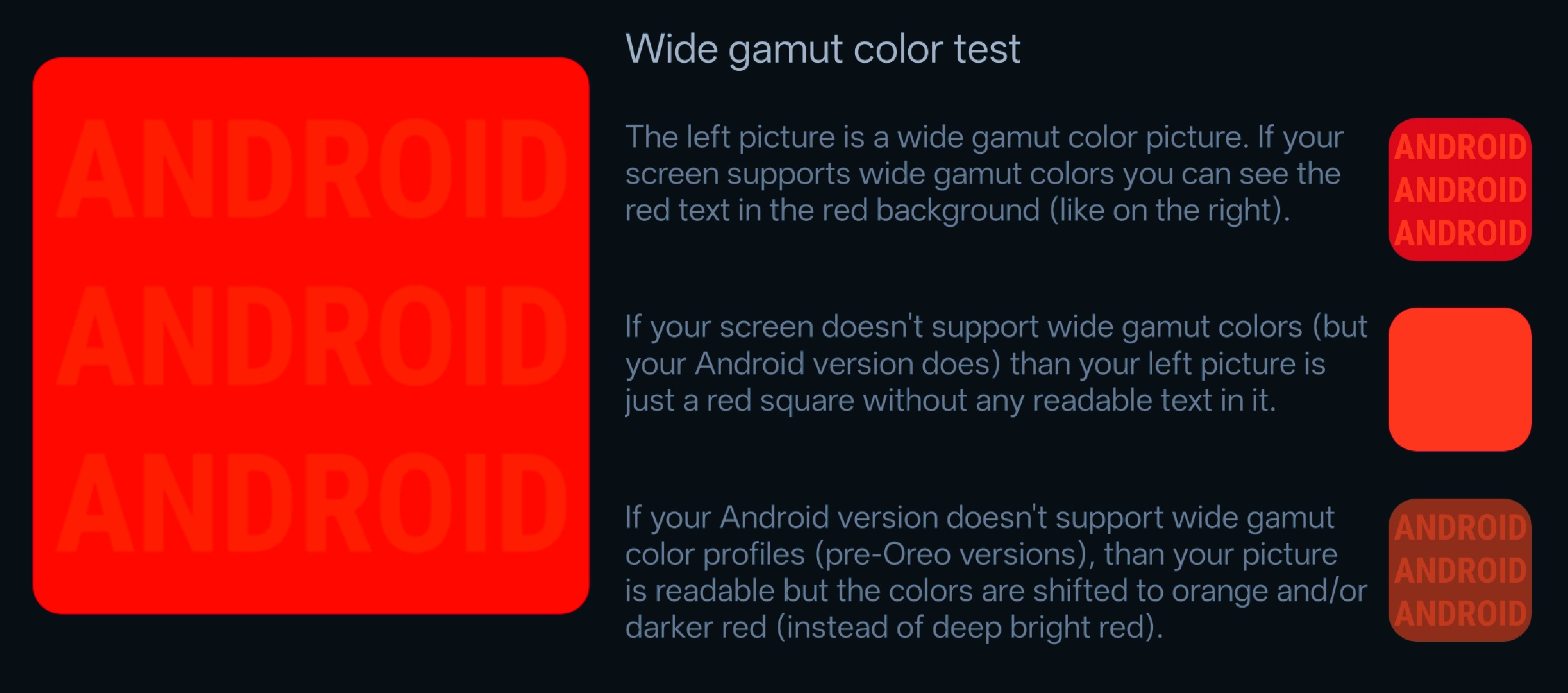 | Rec.2020 | Android Ultra HDR standard for displaying HDR photos with enhanced tone mapping and a brightness boost for highlights |