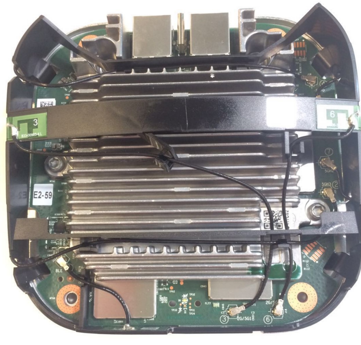 One, two or three (or more) identical units. The one connected to the gateway (or another router ideally in bridge mode) via Ethernet cable becomes the router. The others become a satellite to connect to the router. Each has six antennae. It uses a Qualcomm IPQ8174 Oak Wi-Fi 6 system on a chip, 1GB DDR4 RAM, 4GB eMMC storage (mainly for its eero secure apps), and Qorvo Bluetooth-Zigbee-Thread IoT radio (not tested). The majority of the internal space comprises heatsinks as the units get pretty hot.