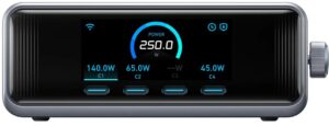 It follows the excellent $149.95 Anker 200W 6 port GaN USB desk charger – the brute we need upping the maximum 100W to 140W, adding an informative colour LCD screen and an app.
