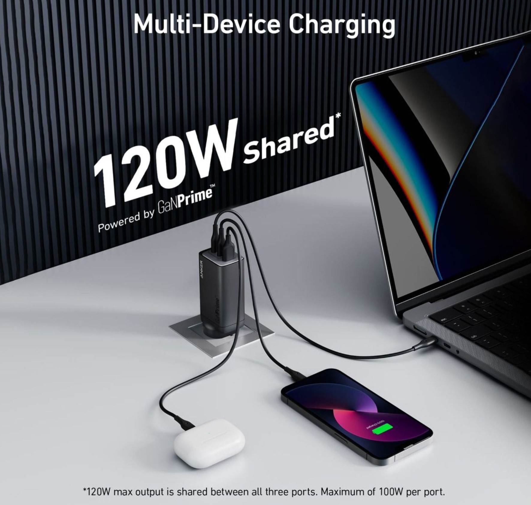 Three ports, 120W combined charging, and Anker’s expertise in chargers and cables make this an excellent choice.