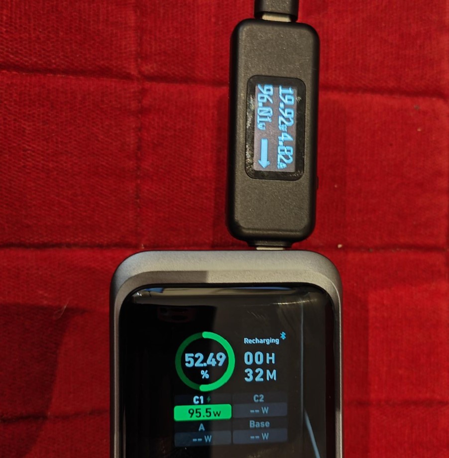 Caveat: You need a 100W GaN charger or higher to achieve the fastest charge times. You can charge at 15-65W, but the time increases accordingly – like trying to use a garden hose to fill a swimming pool.