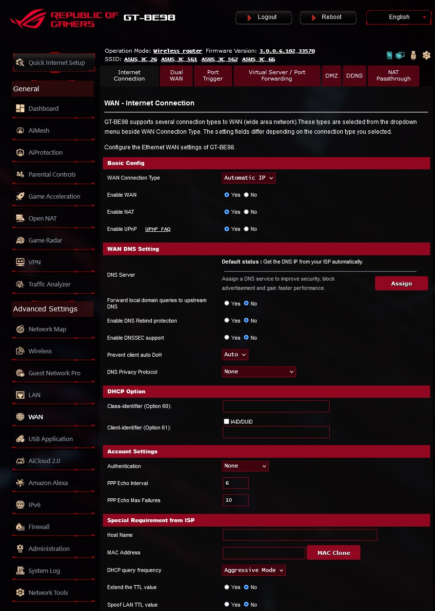 ASUS ROG Rapture GT-BE98 BE2500 Base Specs