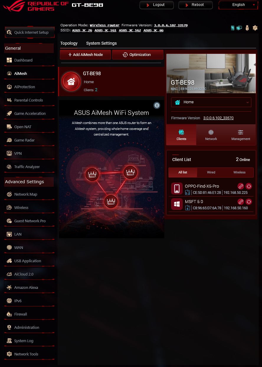 Selected ASUS routers are AiMesh compatible. That means it can join two or more routers via Ethernet or 5GHz Wi-Fi backhaul (best with Tri-band 2.4Ghz/5Ghz 1 and 5GHz 2 bands and between 5-10m from the main router). This offers a single SSID and password for seamless roaming.