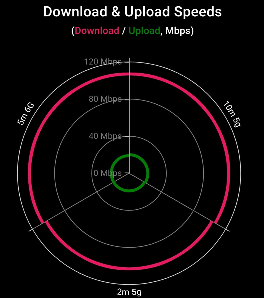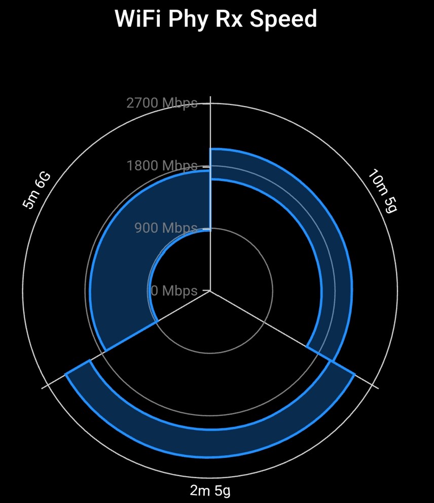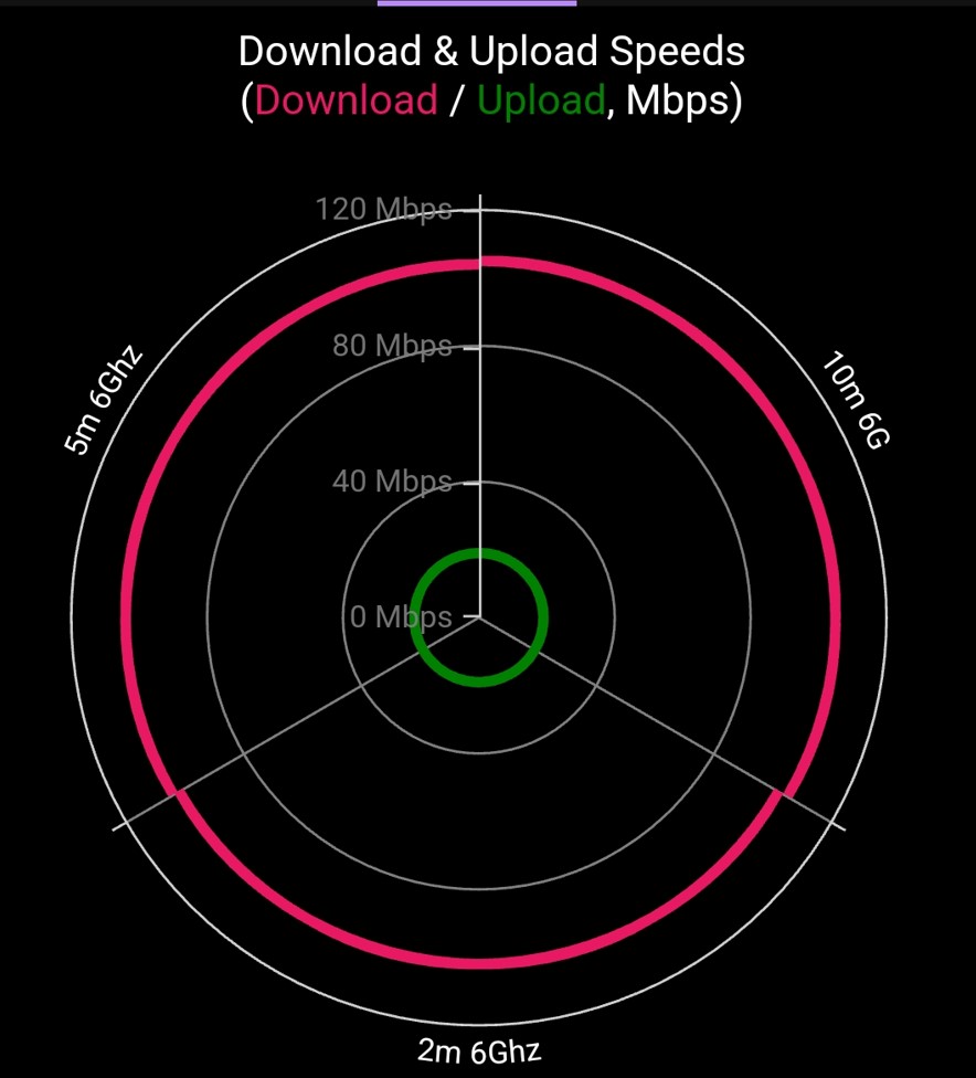 The router gives maximum download/upload speeds out to 10m on 6G and 5G.
