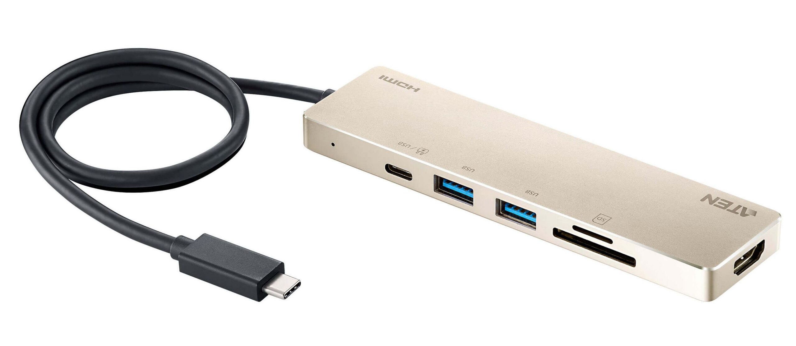 The ATEN USB-C Travel Dock UH3239 stands out for two reasons. First, it has 4K HDMI 2.0, USB-C (upstream pass-through charging or downstream USB-C 3.1), SD and microSD. Next, it has a solid aluminium case with a quality we have come to expect Aten.