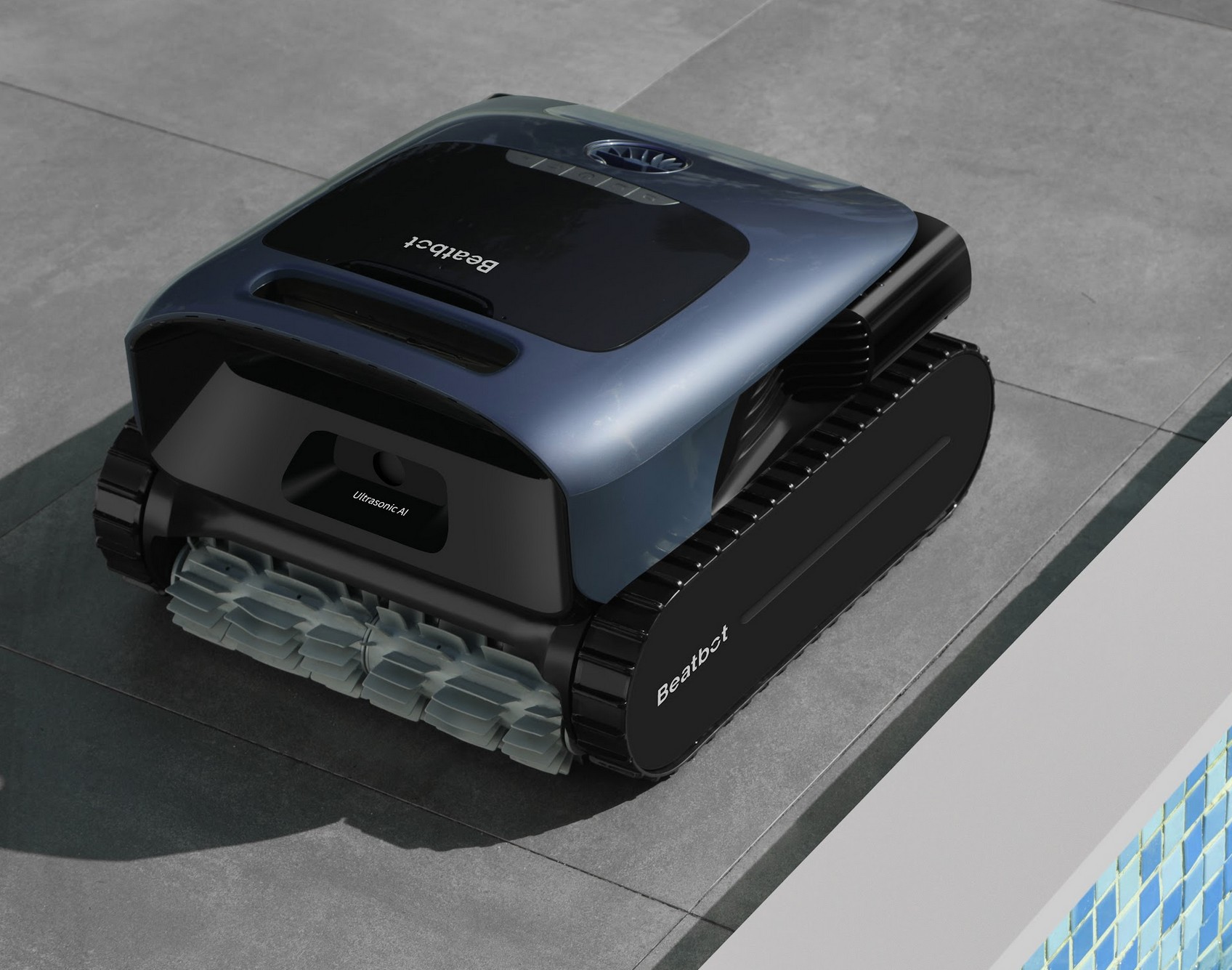 The Beatbot Aquasense Pro Pool Robot vacuums the floor, walls, and waterline and then floats to the top to become a skimmer. It can also dispense a clarifying solution.