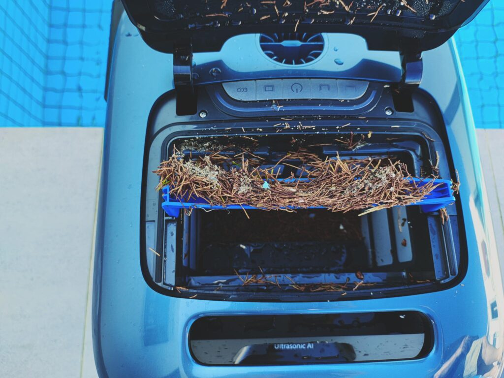 Its speed creates a ‘bow’ wave that pushes detritus aside. Even after repeated cleans, there was still visible detritus. It must slow down, especially at the edges (firmware fixable).