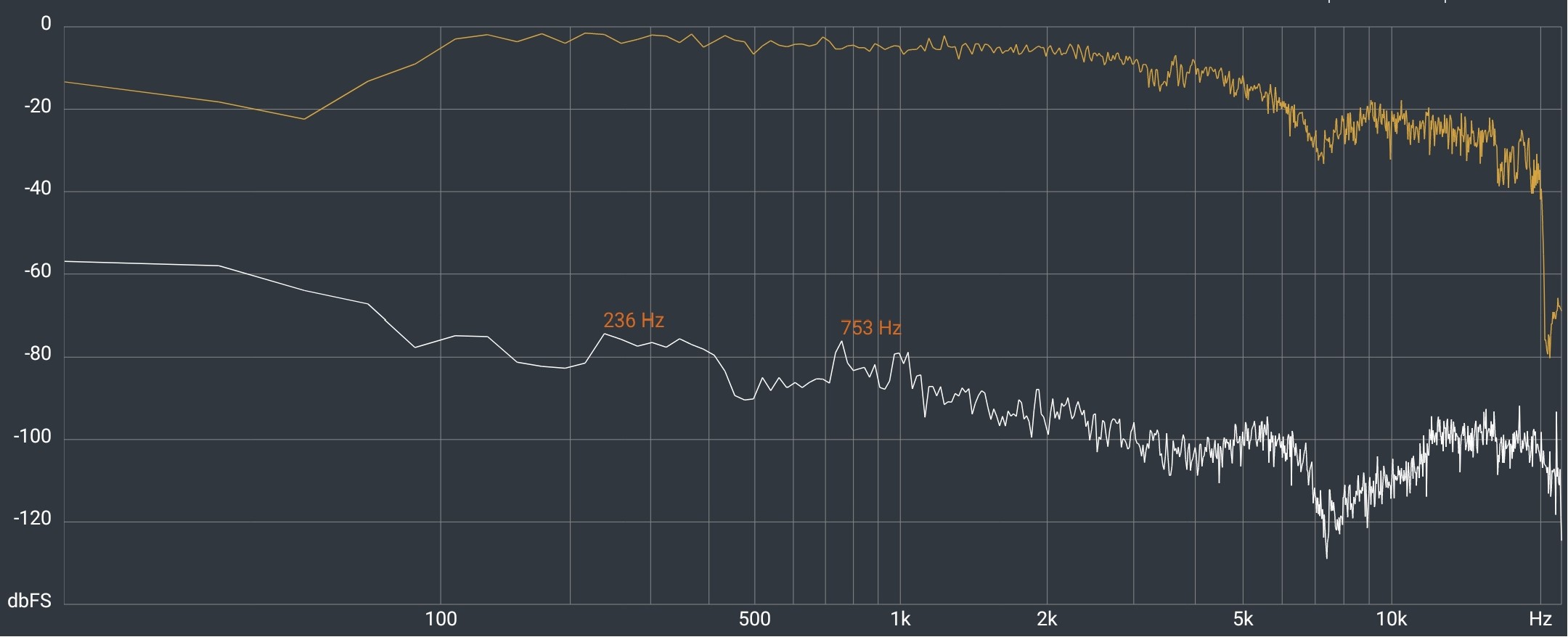 While it claims 75Hz-20kHz we found bass creeping in at 40Hz (low) and building solidly from 50-100Hz (mid) and then flat (good) to 20kHz. Perfect.