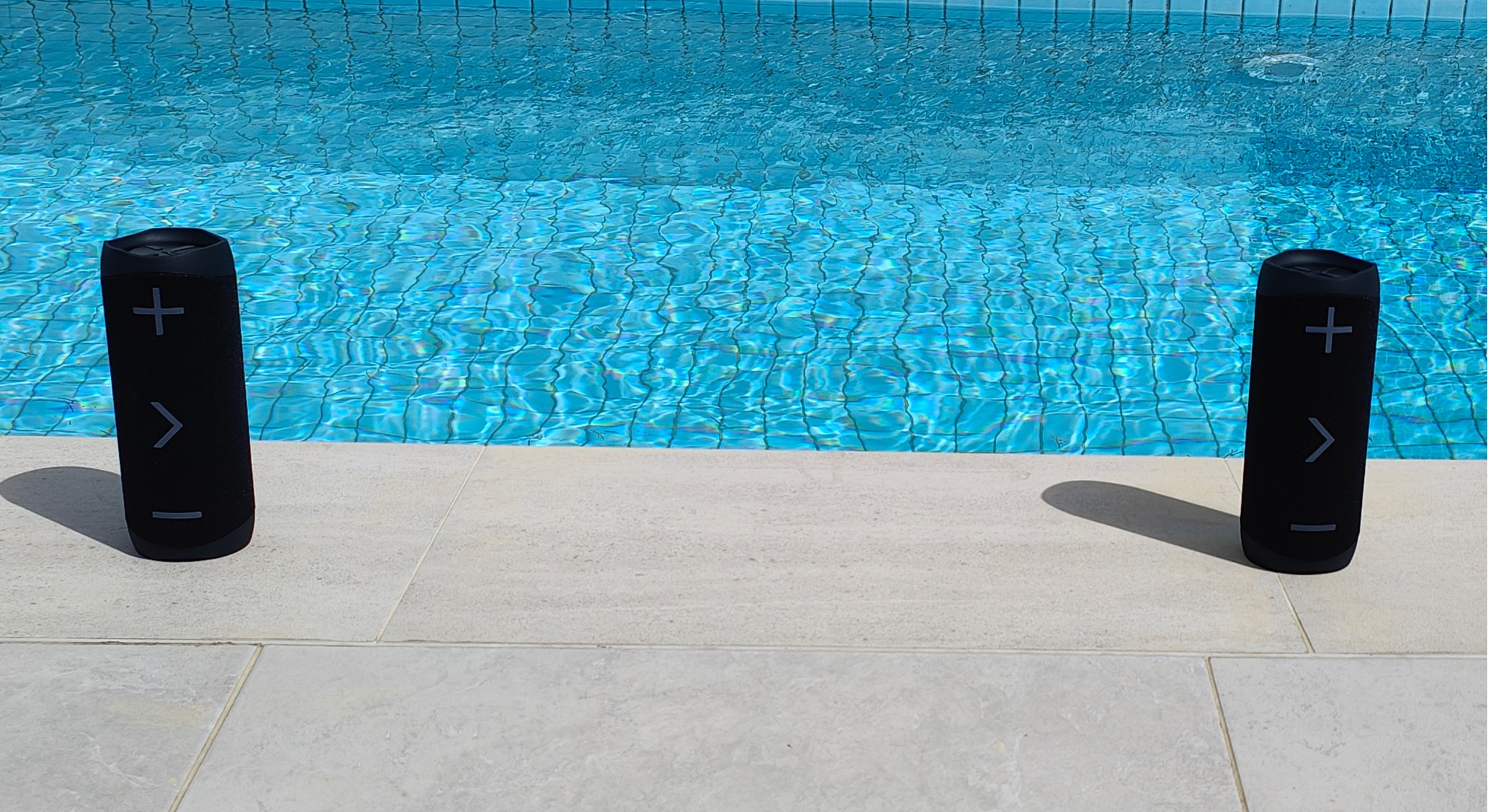 Unlike the BlueAnt X3i BT speaker – BT, IP67 and loud, which has forward-firing speakers for landscape mode, the X3D-MAX needs to stand upright (portrait). Sound emanates from all around, so you need to place it in the centre of the action. Don’t put it in a bookshelf or against a wall as that defeats its purpose.