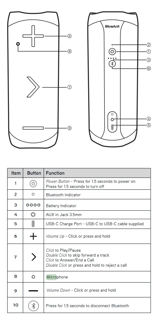 • Excellent BlueAnt neutral sound signature from 40Hz-20kHz