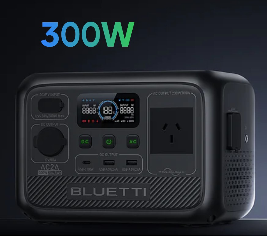 The Bluetti AC2A 300W (204.8Wh) is one of its smallest and lightest portable power stations. It is perfect for campers, hikers, or fishers – or BCF’ers as we call them in Oz.