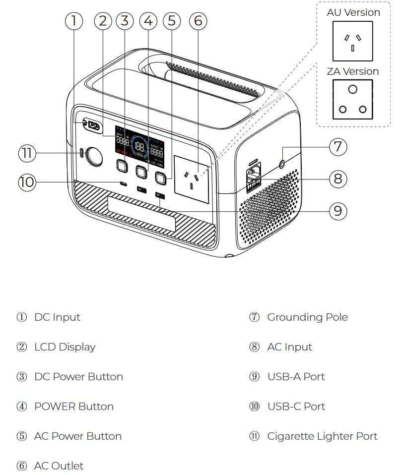 • DC 12V/8.2A/98.4W (or 24V/8.2A/201.6W) for solar panels or car charging.