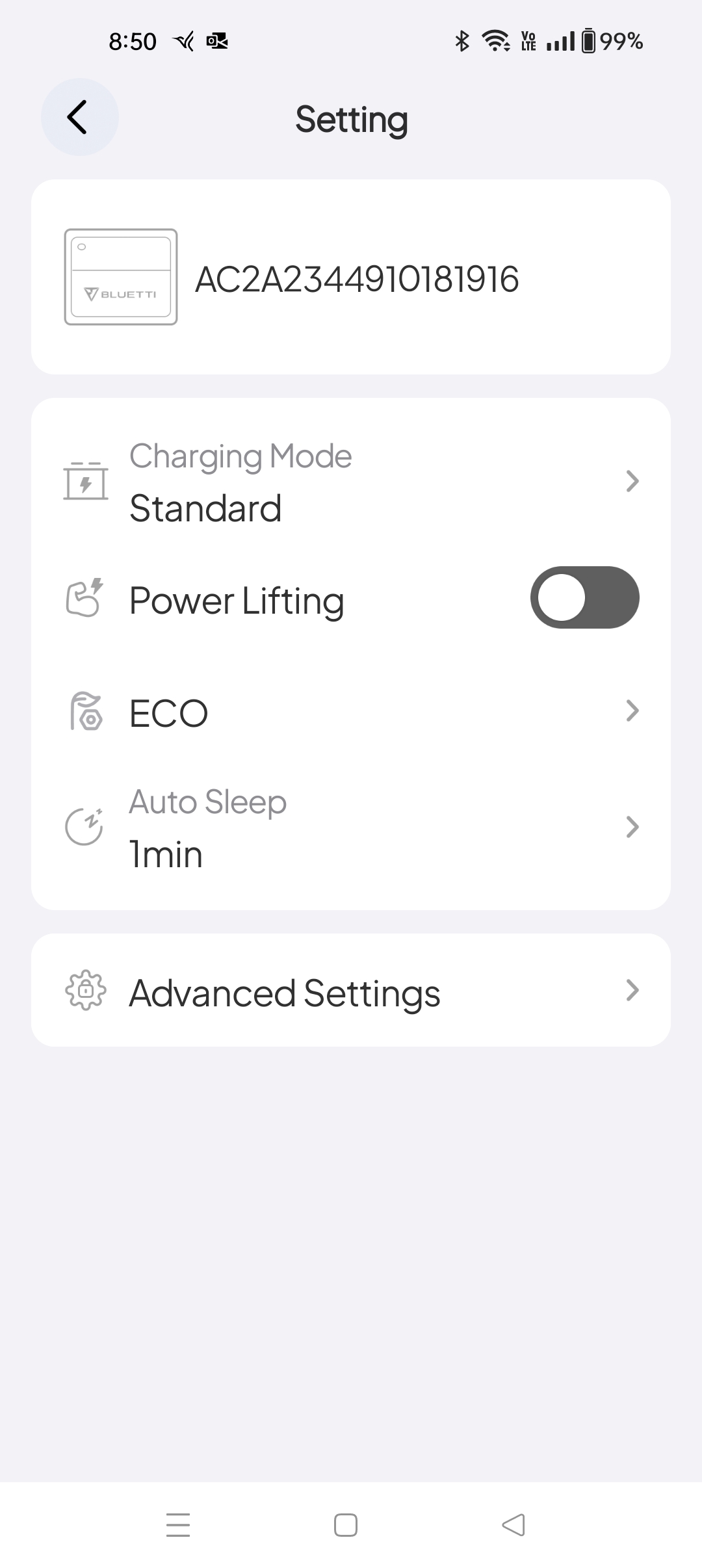While BLUETTI would like you to set up an account to ‘own the client’, it also allows Offline Bluetooth mode without accepting terms and conditions. It is handy to change charge rates and to see what power is being drawn/remaining.