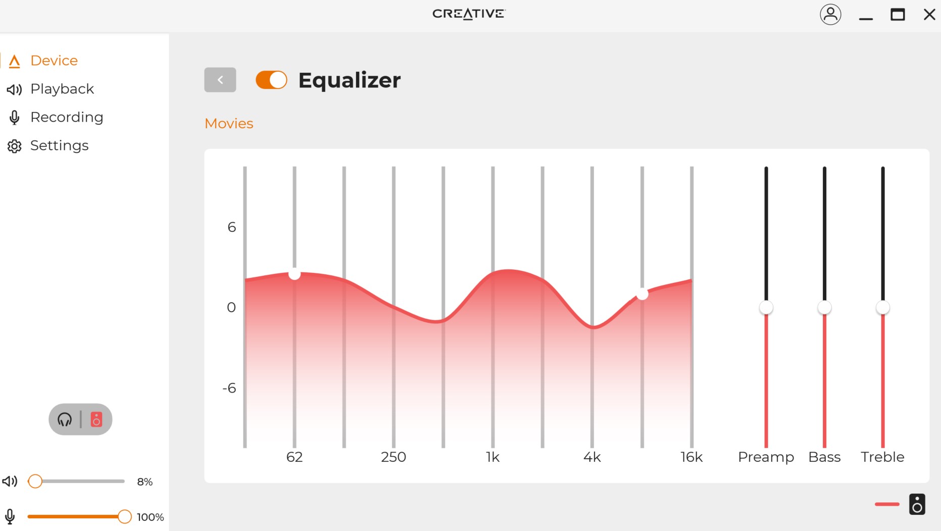 It is plug and play with several onboard presets/modes. It does not need an App, but you can download the Creative App for Windows or macOS that adds even more features to the onboard feature set of movies, gaming, and effects on/off.