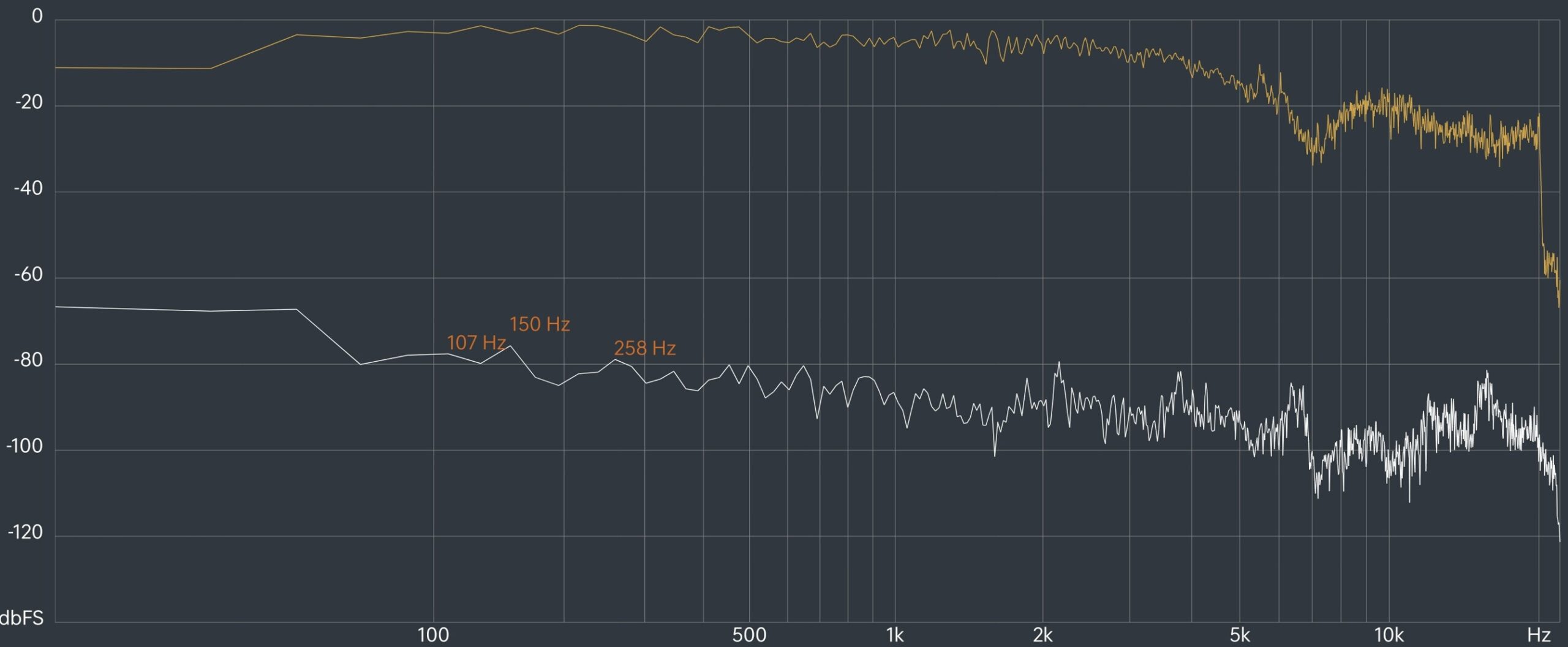 Our white noise generator verifies frequency response is 50Hz to 20kHz. That means you get all the critical bass (and you can feel it via the sub-woofer, very strong mid and low treble, recessed mid-treble to remove harshness and then strong upper treble that adds vitality and sound direction.