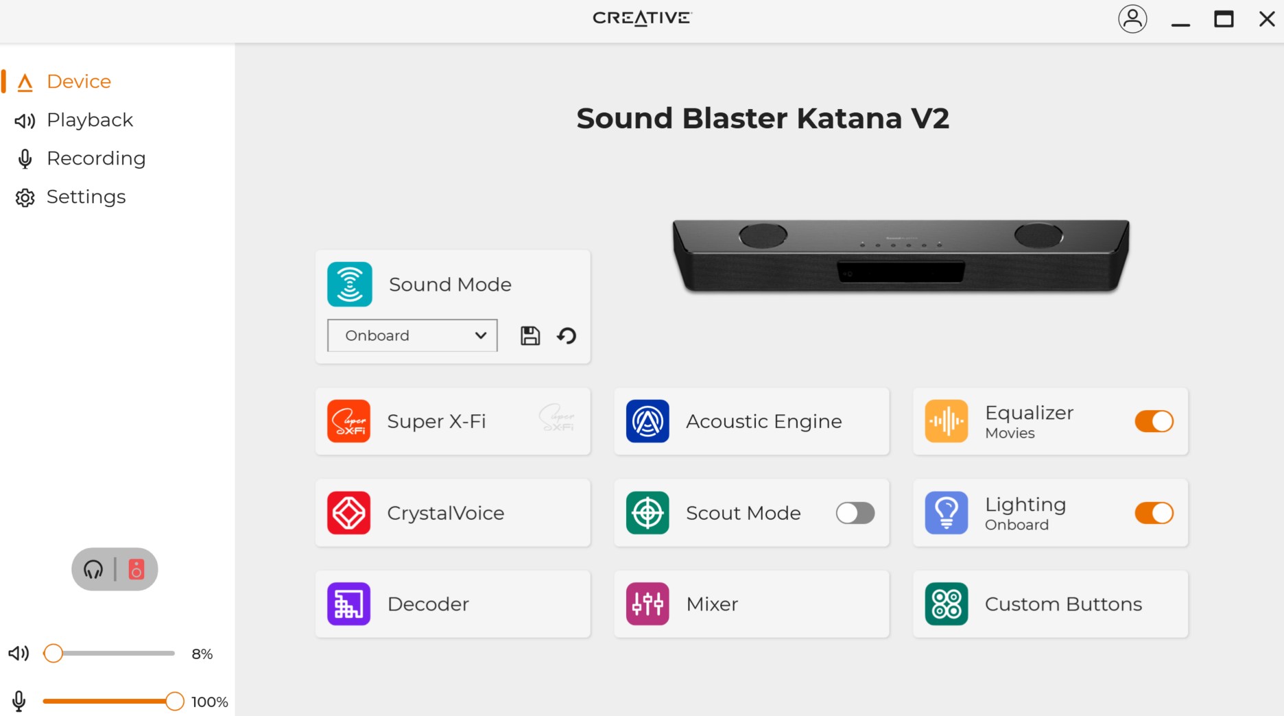 I like Creative SoundBlaster gear – it never ceases to surprise me with fully-featured products at often insanely low prices. The SoundBlaster Katana V2 has everything a PC (or mac) enthusiast wants and sounds good enough to compete with brand name soundbars at higher prices.