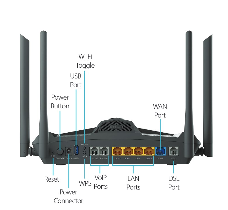 The D-Link DSL-X1852E AX1800 is a versatile Wi-Fi 6, VDSL/ ADSL2+ Modem for universal DSL connectivity in Australia and New Zealand. It has 2 VoIP ports and a WAN port to connect to NBN FTTP and HFC. It is an excellent entry-level AX modem/router for NBN FTTN.
