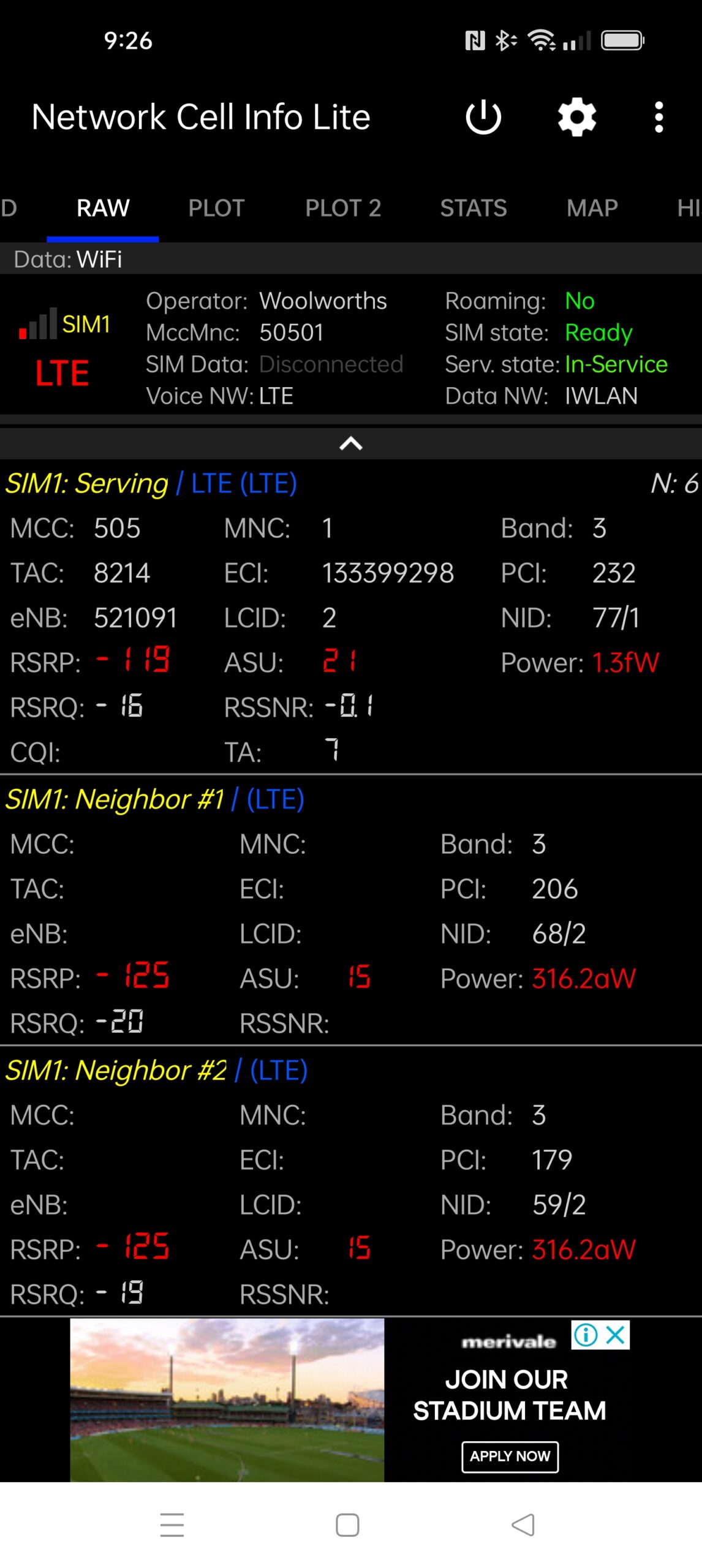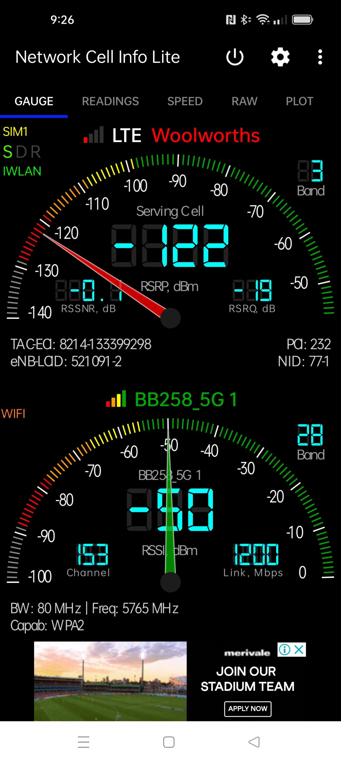 Download the free Network Cell Info Lite & Wi-Fi from Google Play (not the paid version) and install it on an Android phone. Make sure the phone uses your regular carrier network (no point in testing Optus if you use Telstra). Sorry, we cannot find the equivalent on an iPhone.