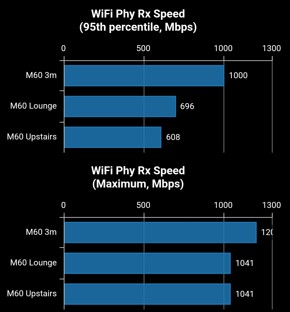 We tested through a timber beam floor (Router L0 and satellite L1 above). Both the 2.4 and 5GHz signals rated ‘Excellent’.